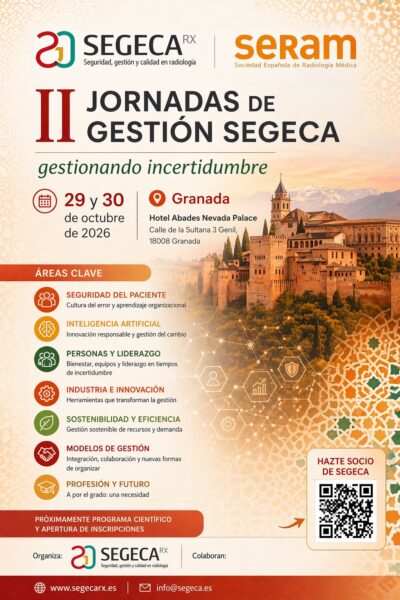 SEGECA, Sociedad Española de seguridad, gestión y calidad, agrupa a todos aquellos médicos, especialistas en Radiodiagnóstico, con especial dedicación o particular interés en el área de la gestión, la calidad y la seguridad asistencial en radiología.